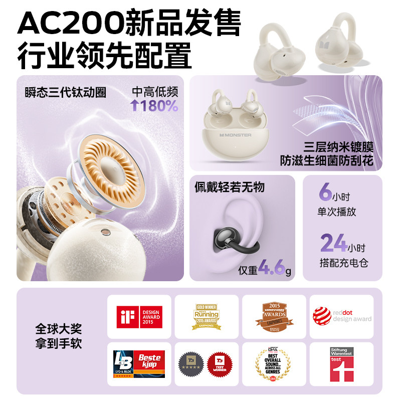 魔声AC200耳夹式蓝牙耳机开放式气骨传导新款AI智能翻译无线耳机
