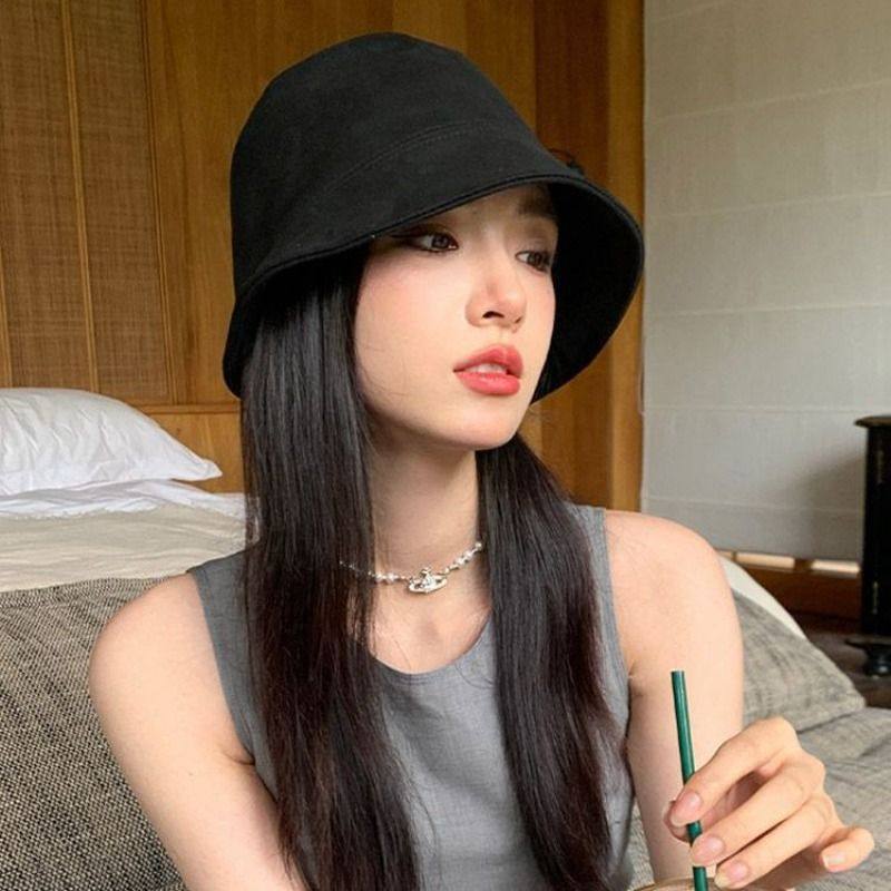麂皮绒渔夫帽子2025新款女秋冬百搭显脸小素颜盆帽气质遮脸水桶帽