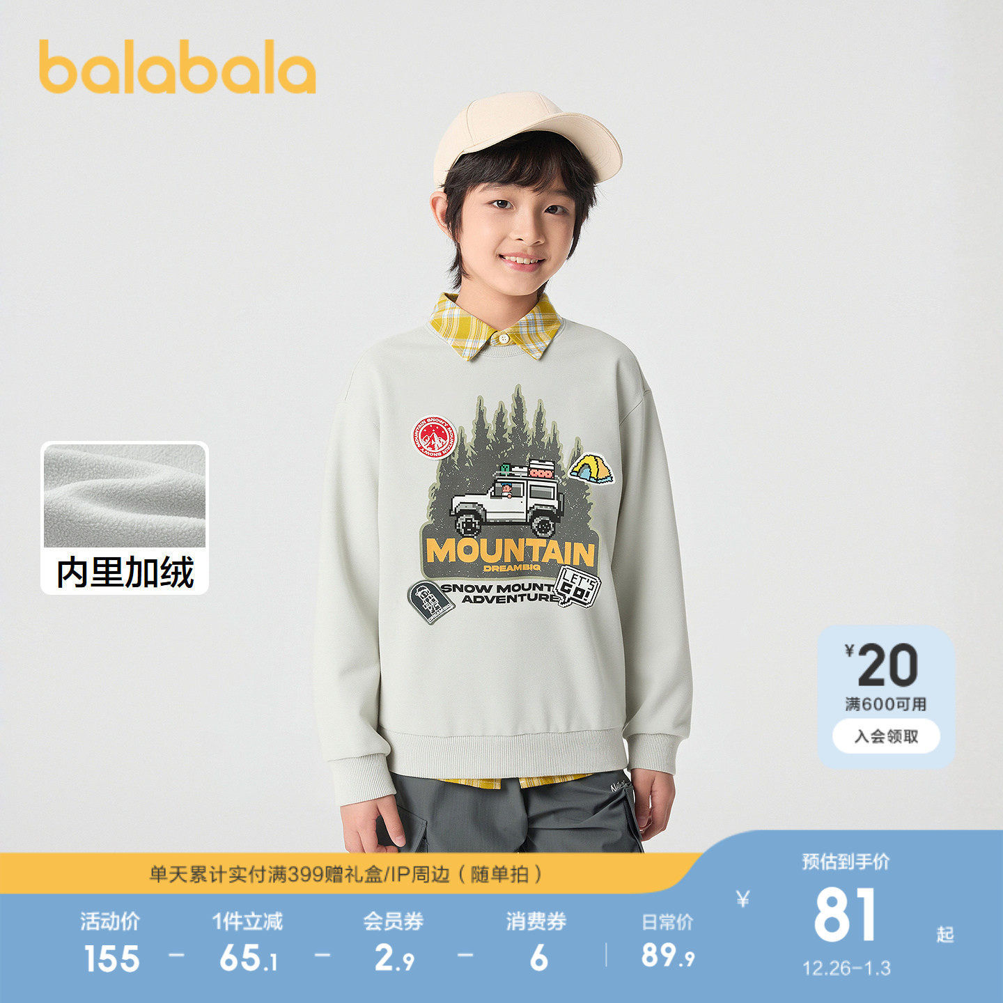 巴拉巴拉童装男童卫衣儿童秋冬中大童上衣加绒保暖休闲时尚百搭潮