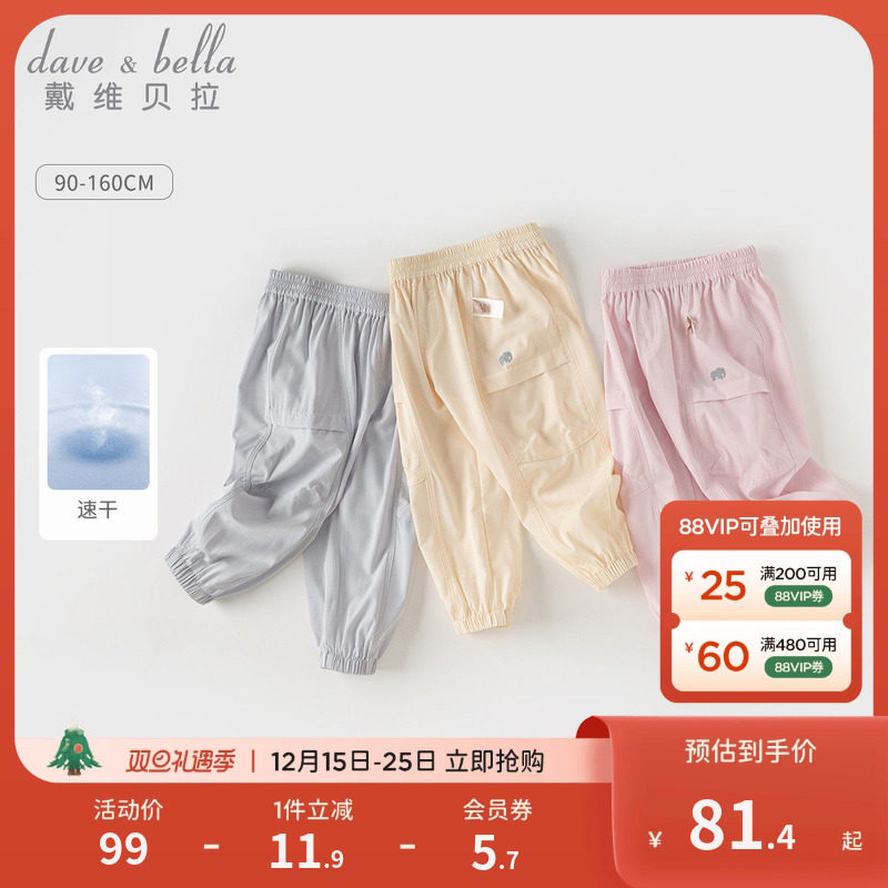 戴维贝拉女童裤子儿童工装裤男童运动裤夏季新款休闲长裤宝宝童装