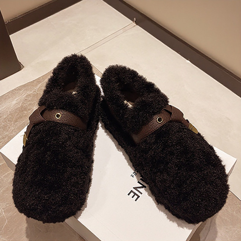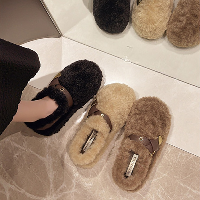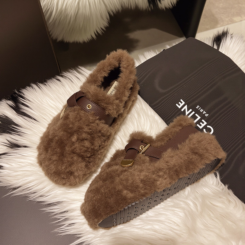 羊羔绒厚底毛毛鞋女2025年新款冬季皮带扣美拉德加绒保暖孕妇棉鞋