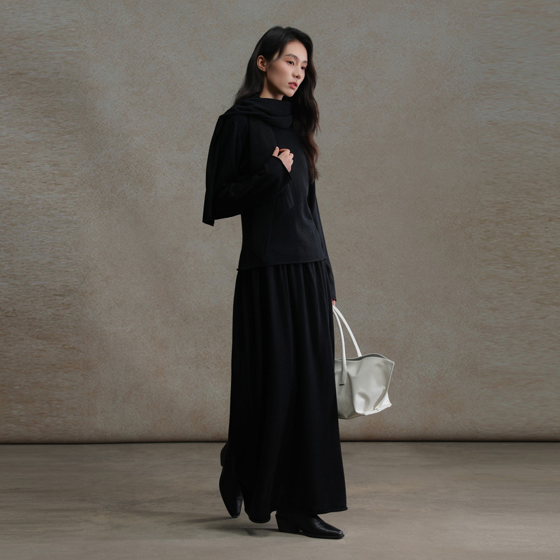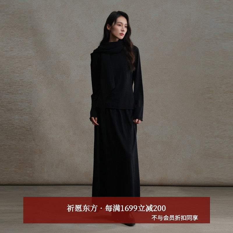 黑标BAIZHUO商场同款25冬新款围巾+半高领毛衫+半裙套装AZ54TZ198