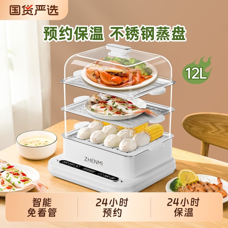 臻米电蒸锅多功能家用三层2025新款蒸汽锅早餐机不锈钢定时大容量