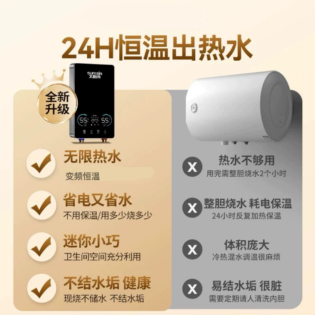 太阳雨即热式电热水器电家用小型变频速热租房专用洗澡加热过水热