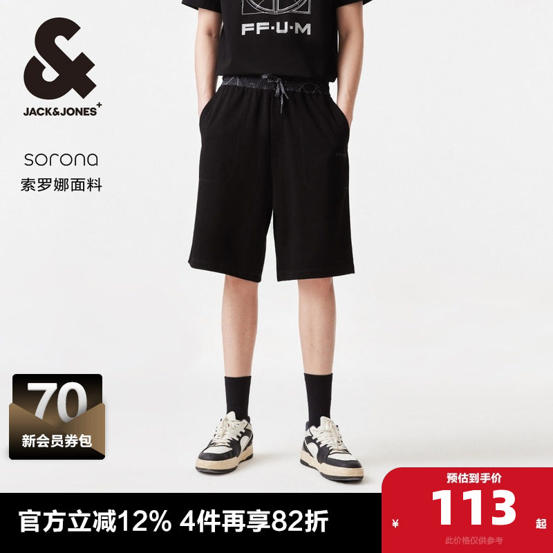 杰克琼斯夏季新款男士字母刺绣腰果花休闲裤运动短裤男款男裤男装