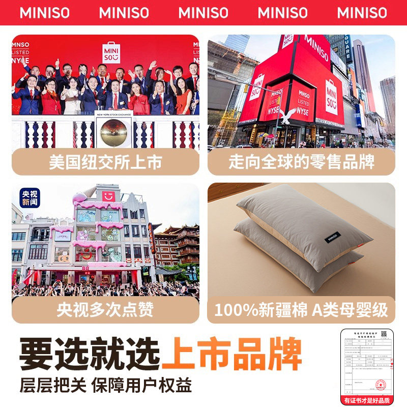 名创优品全棉水洗棉枕套家用一对装纯棉枕头套4874单个枕芯内胆套