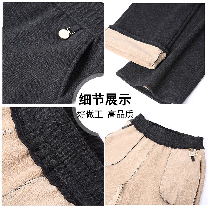 妈妈冬季加厚加绒毛呢裤中老年女保暖直筒大码高腰休闲外穿直筒裤