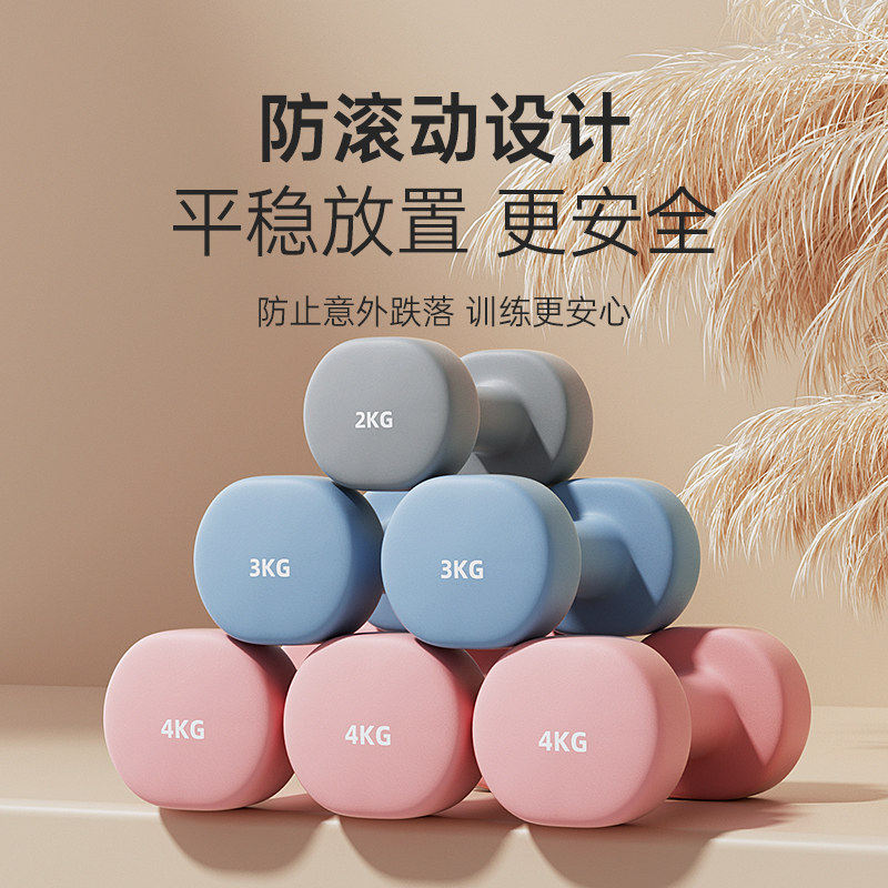 浸塑哑铃女士健身家用器材男士练臂肌瑜伽学生儿童纯铁防滑小哑铃