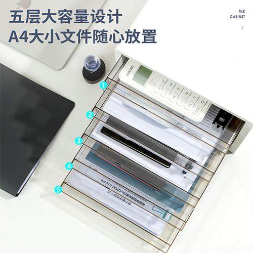 得力桌面文件柜5层Deli\/得塑料抽式透明料柜分整资理箱收纳柜文