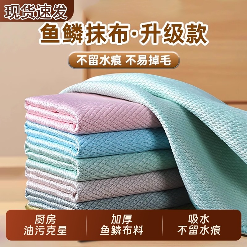 厨房专用抹布家用不沾油吸水不掉毛加厚清洁毛巾洗碗布鱼鳞擦玻璃