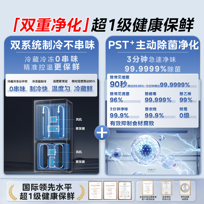 政府换新补贴海尔统帅618L双开对开门大容量无霜一级变频家用冰箱