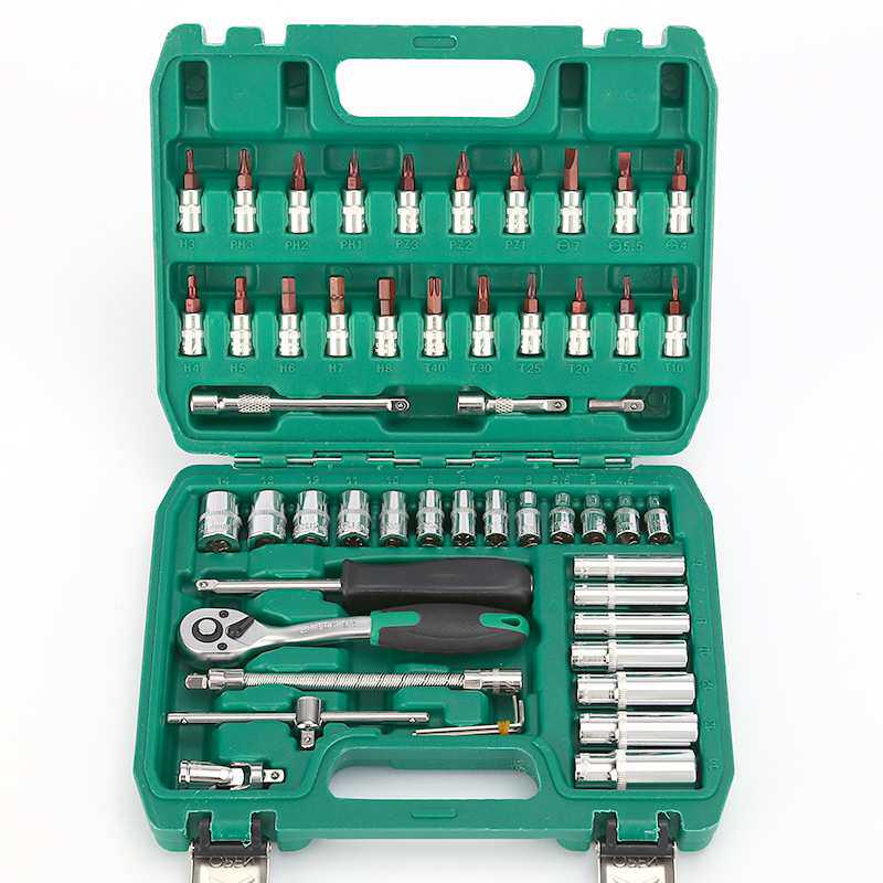 46 53件套汽车维修多功1/4六角汽修套筒棘轮扳手工具套装