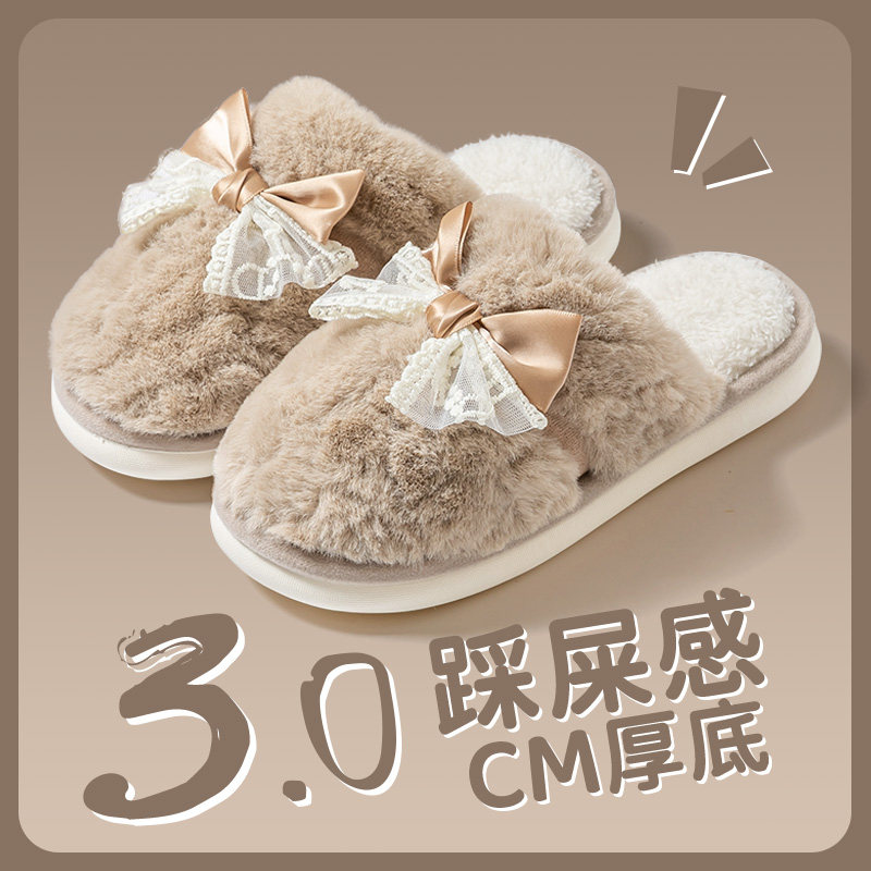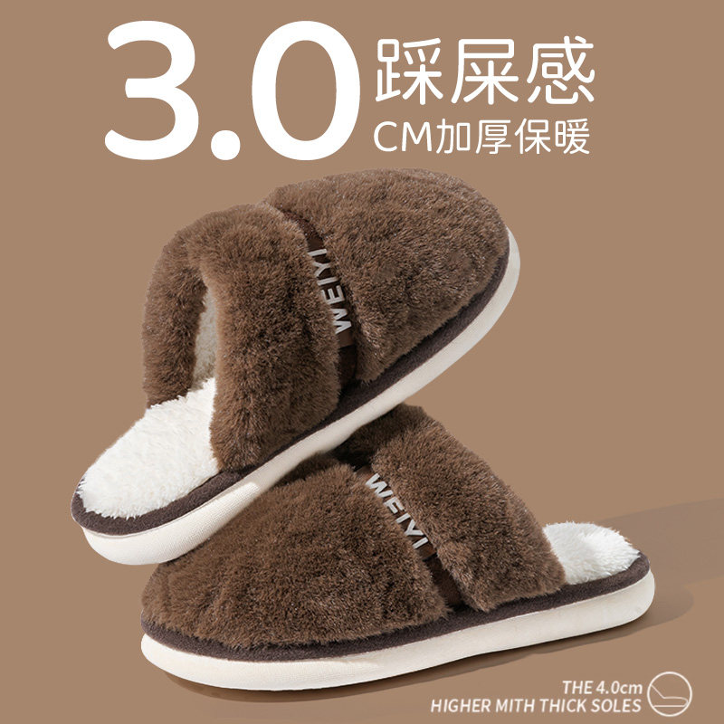 红豆踩屎感棉拖鞋女士秋冬季室内家居2025新款毛绒保暖情侣棉拖男