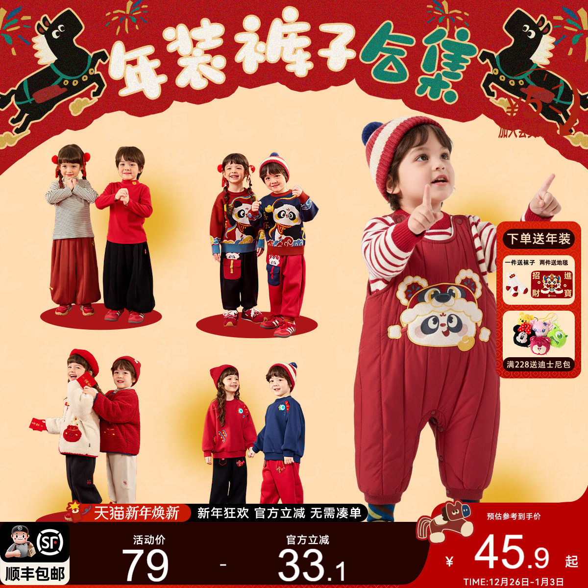 dudujia儿童裤子冬季唐装宝宝拜年男童年装长裤加绒女童新年衣服a