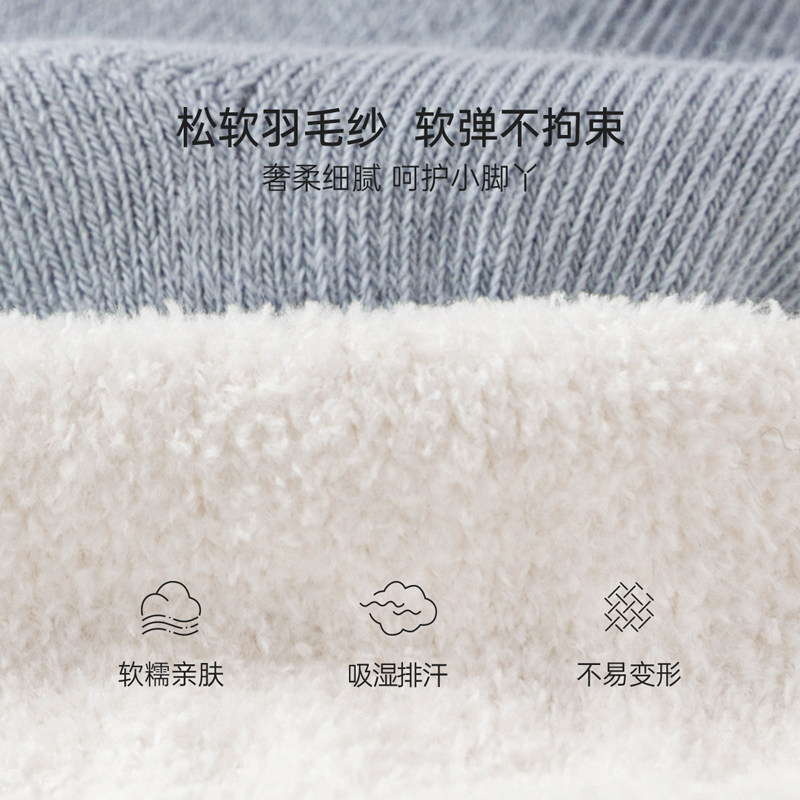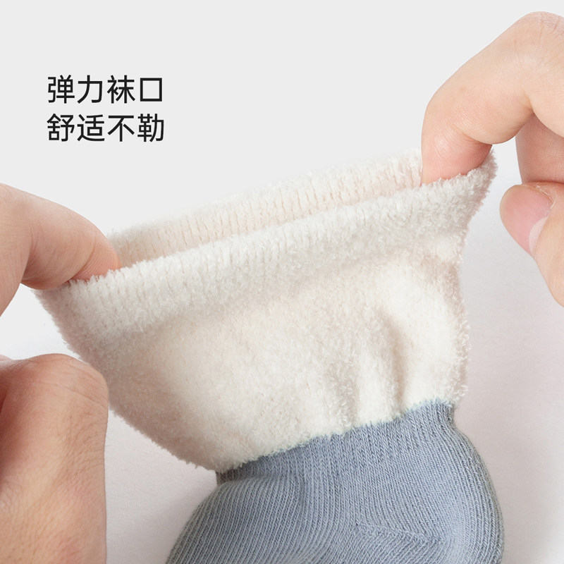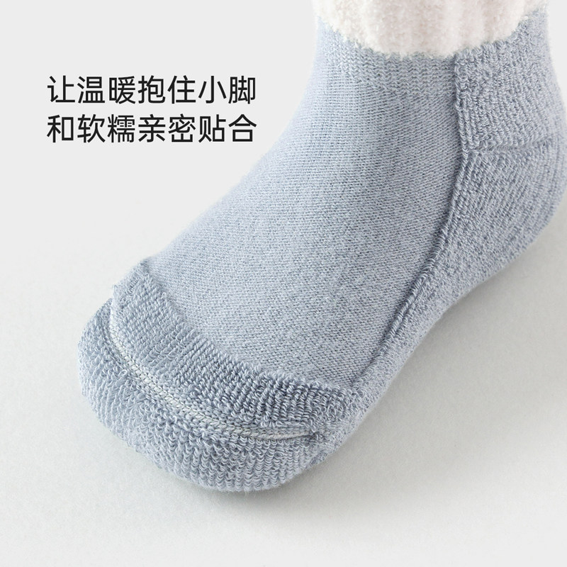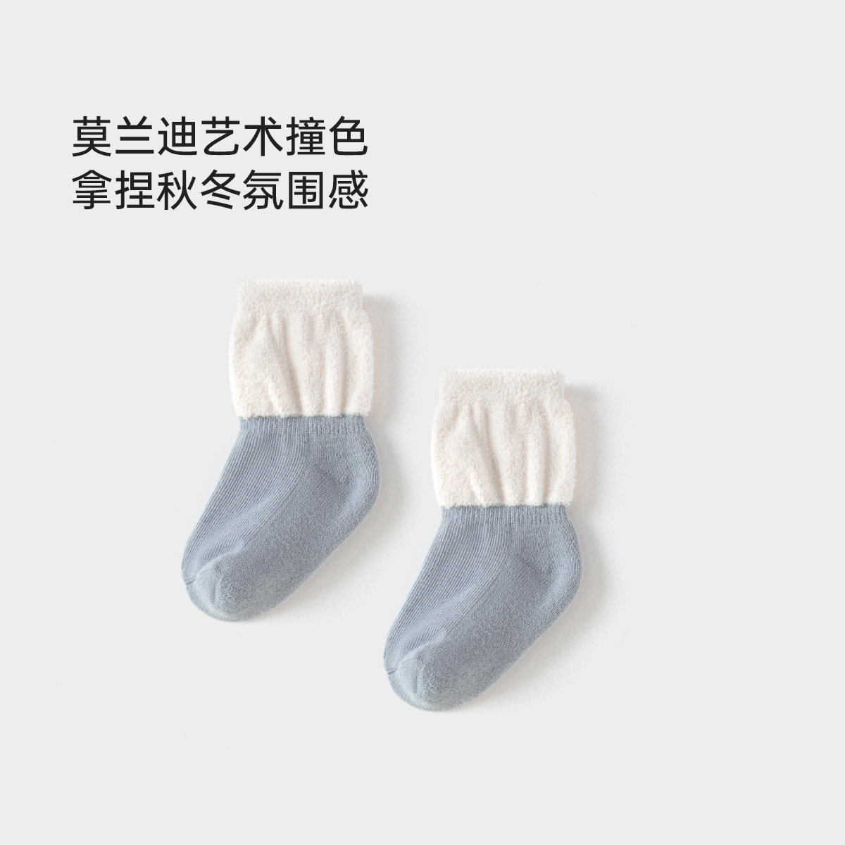 babylove婴儿中筒袜秋冬款加绒保暖宝宝袜子高弹不勒腿拼色毛圈袜