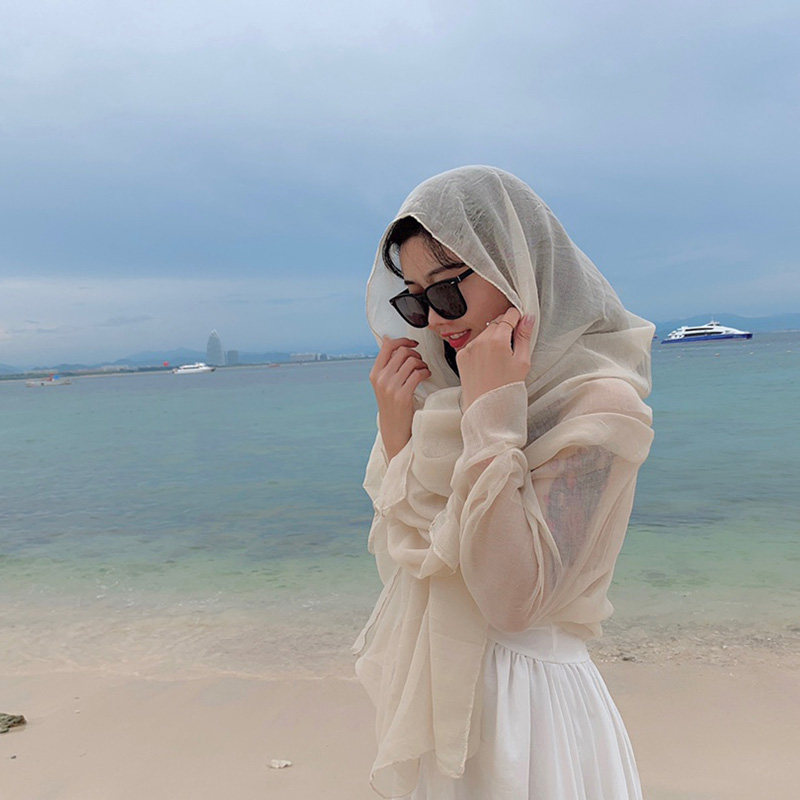 春夏2025新款渐变压皱辫子头巾女百搭遮阳防晒丝巾帽旅行拍照围巾