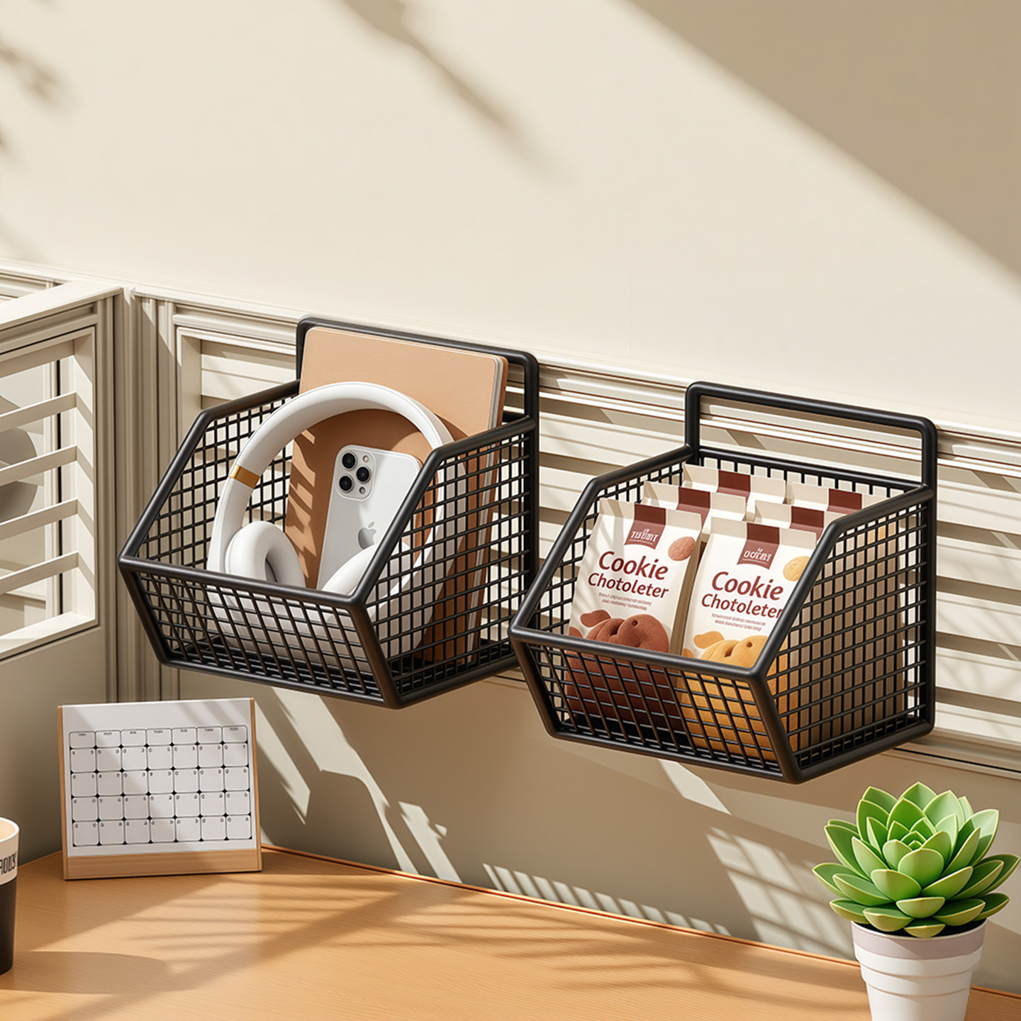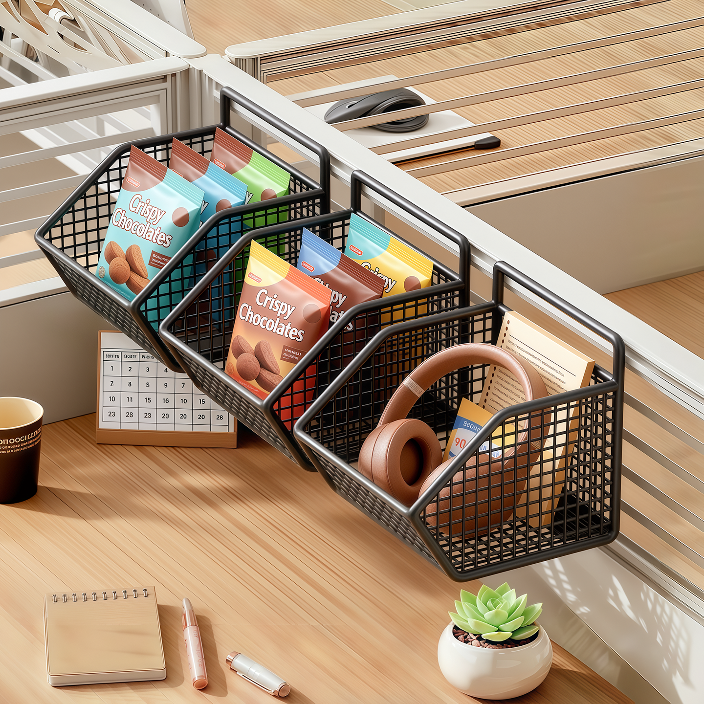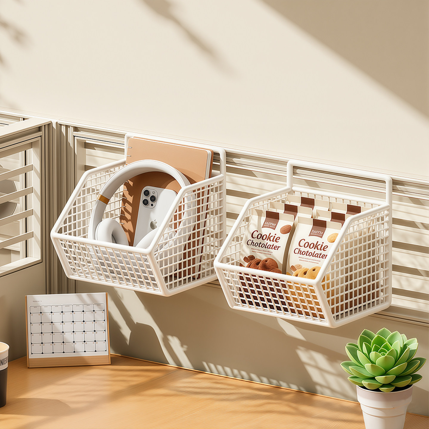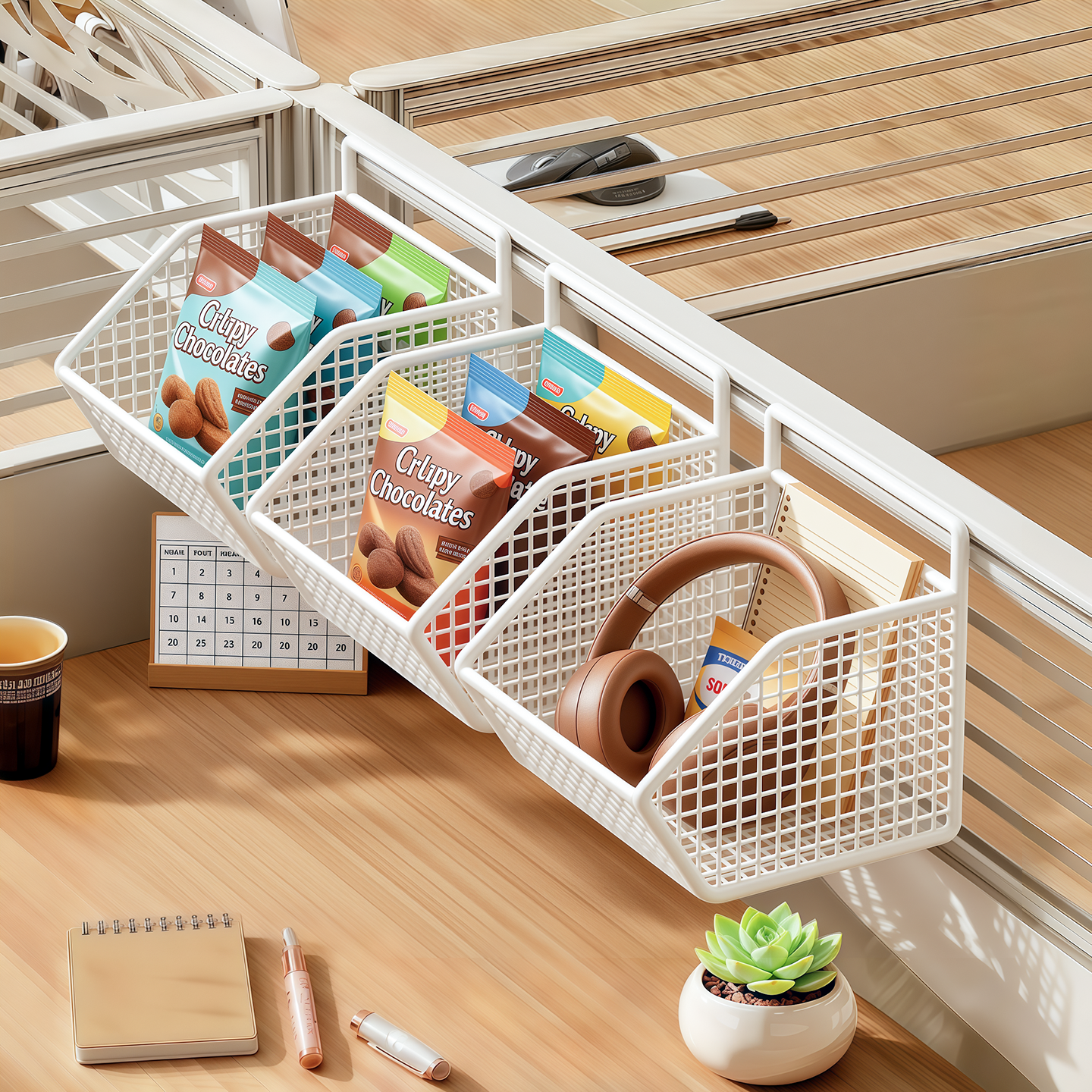 办公桌置物架桌面悬挂式文件收纳架工位整理神器屏风隔板文具资料收纳筐免打孔挂钩大容量储物架宿舍床边挂篮