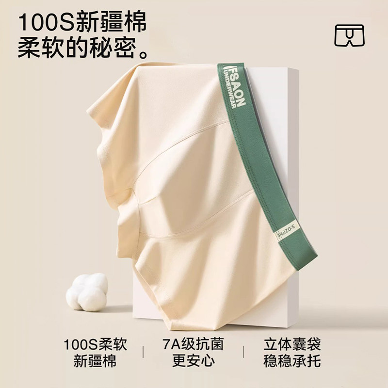 安比斯男士内裤男纯棉7A级抑菌中腰透气四角裤男生短裤衩男式裤头