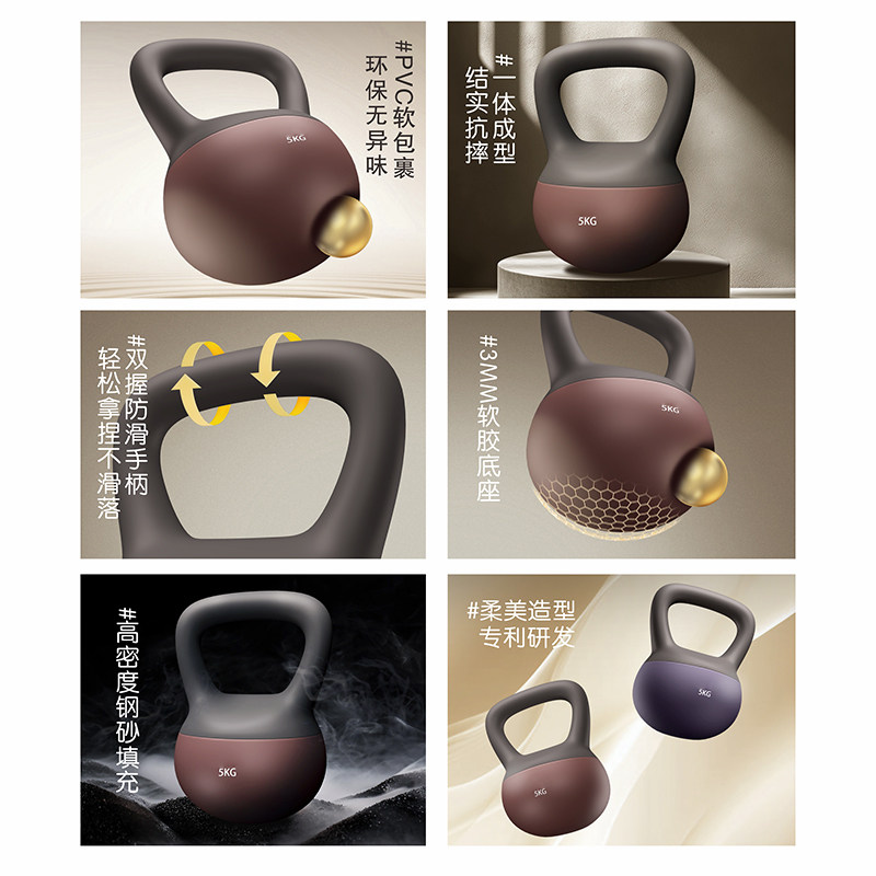 软壶铃男士女士健身家用室内哑铃练臀翘臀神器材运动塑形深蹲6kg