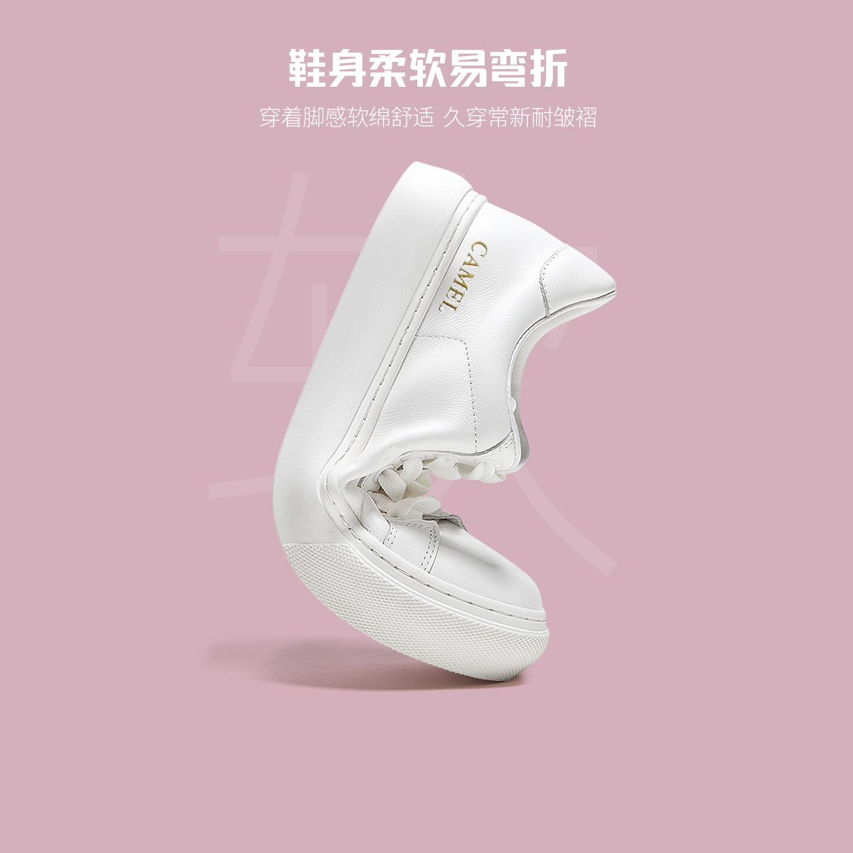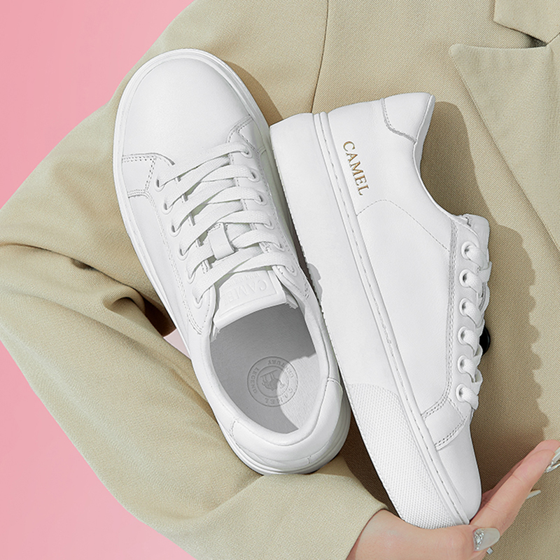 骆驼鞋子女2026春季新款经典百搭真皮平底厚底休闲鞋板鞋女小白鞋
