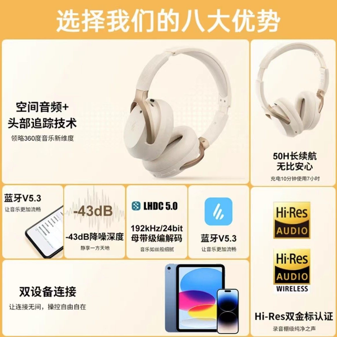 漫步者W820NB空间音频版LS820NB PRO双金标头戴式主动蓝牙耳机