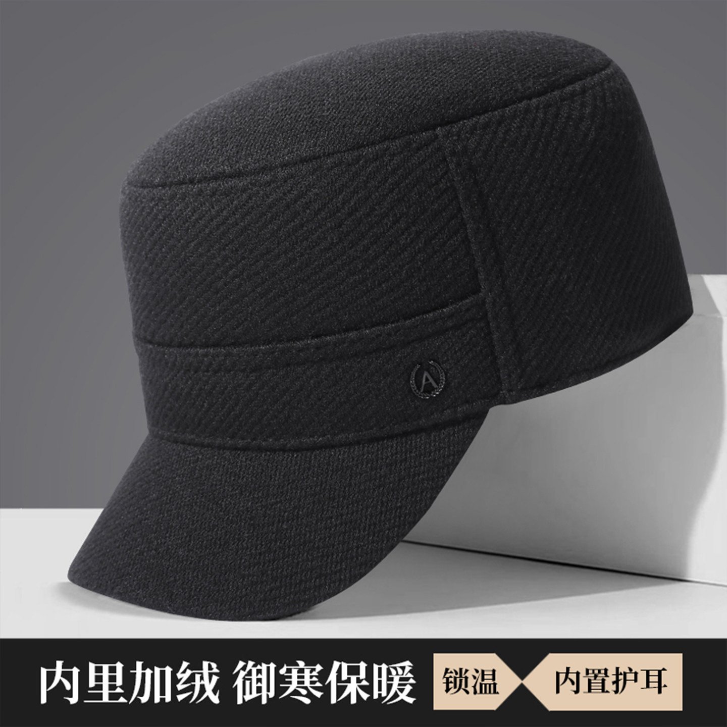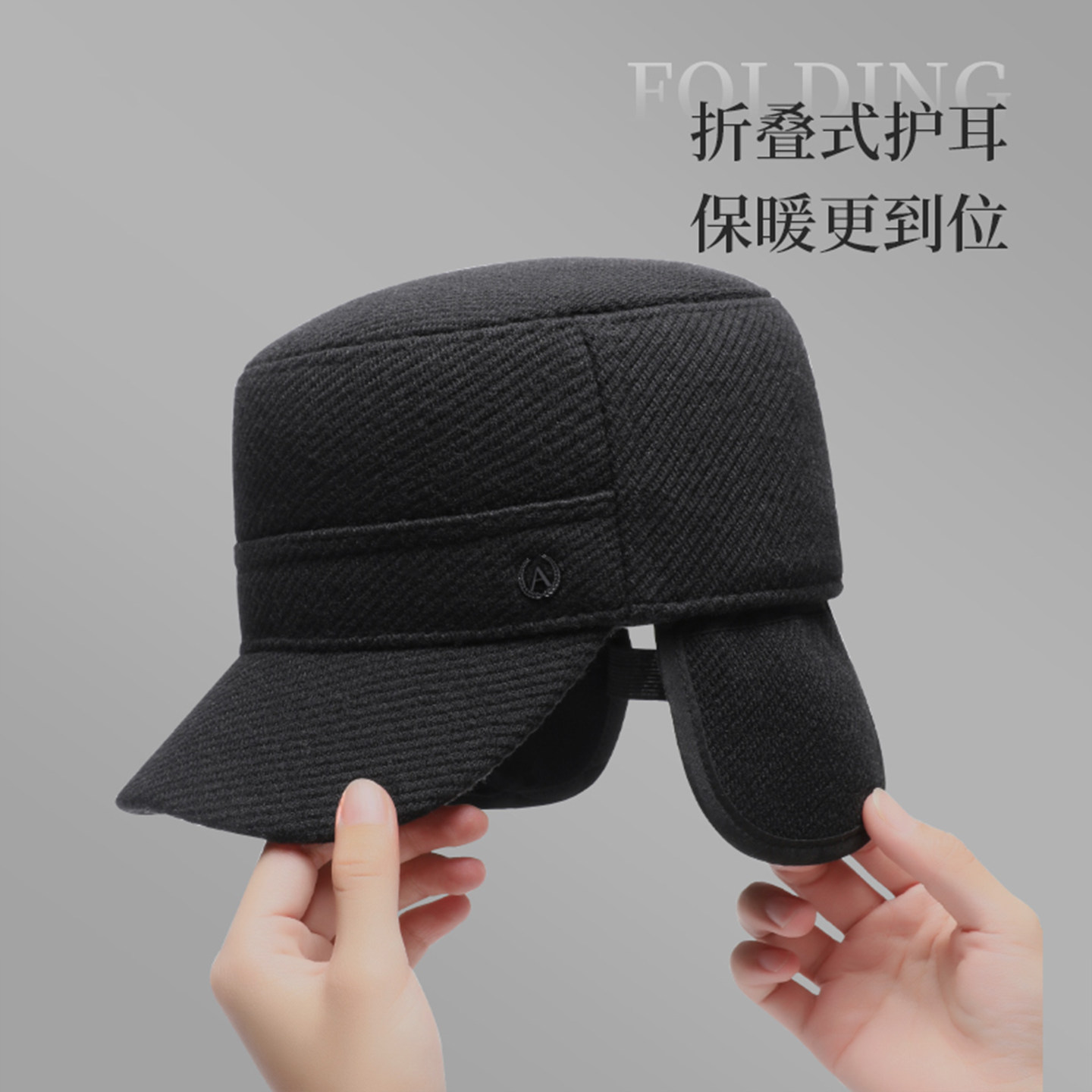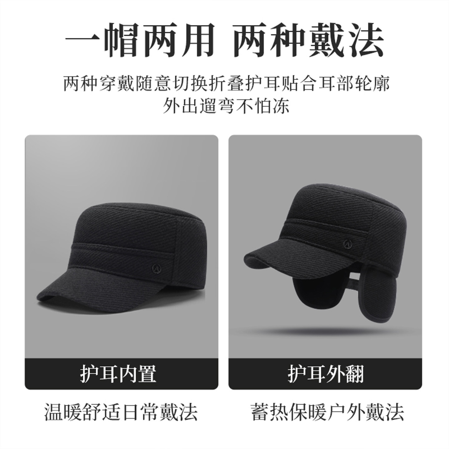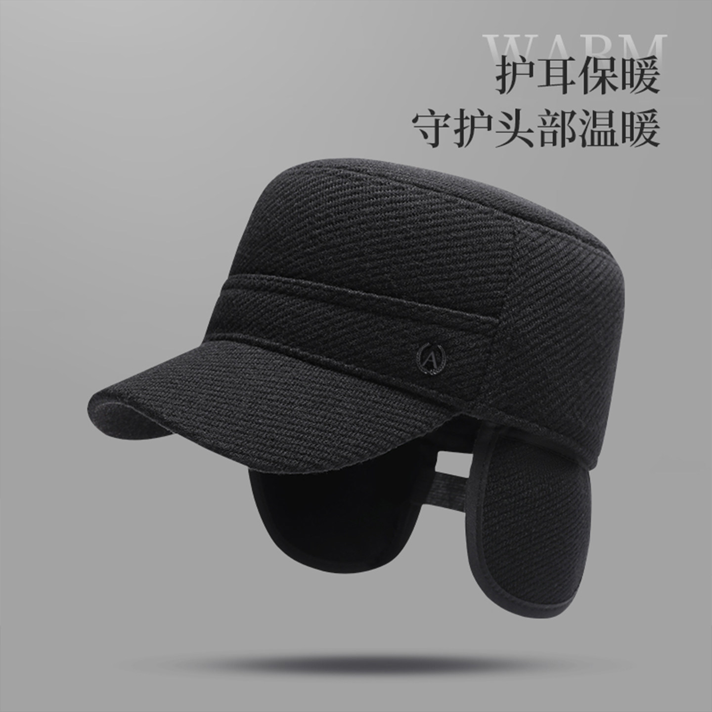 奥康中老年人帽子男冬爸爸平顶棉帽老人爷爷加绒护耳保暖鸭舌帽J