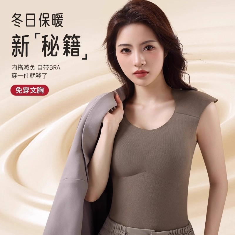 无痕保暖背心女带胸垫秋冬免穿文胸一体式吊带内搭打底衫上衣冬季