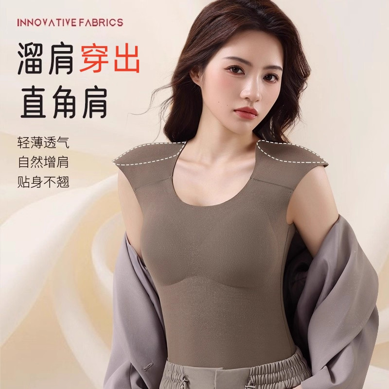 垫肩保暖背心大码内衣女带胸垫免穿文胸隐形粉底液打底直角肩上衣