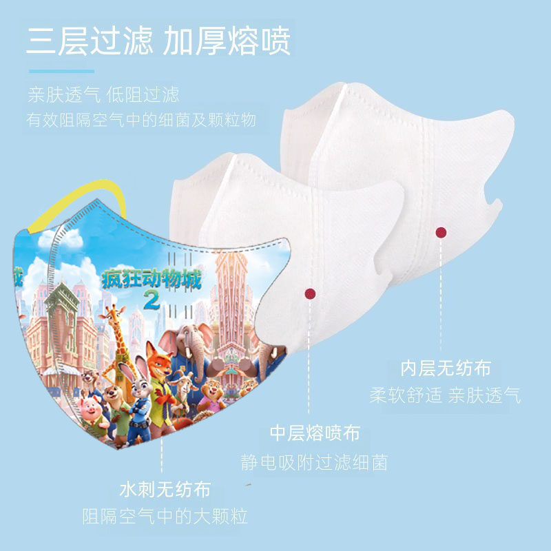 儿童KN95口罩4D立体学生卡通可爱小学生3到12岁四层防护独立包装
