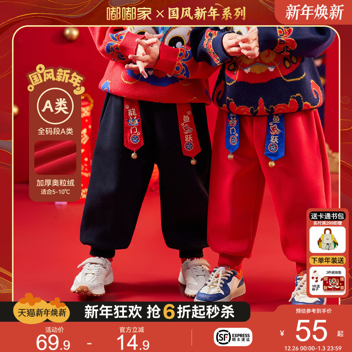 嘟嘟家男童拜年服宝宝唐装裤子加绒儿童冬装长裤过年服女童新年装