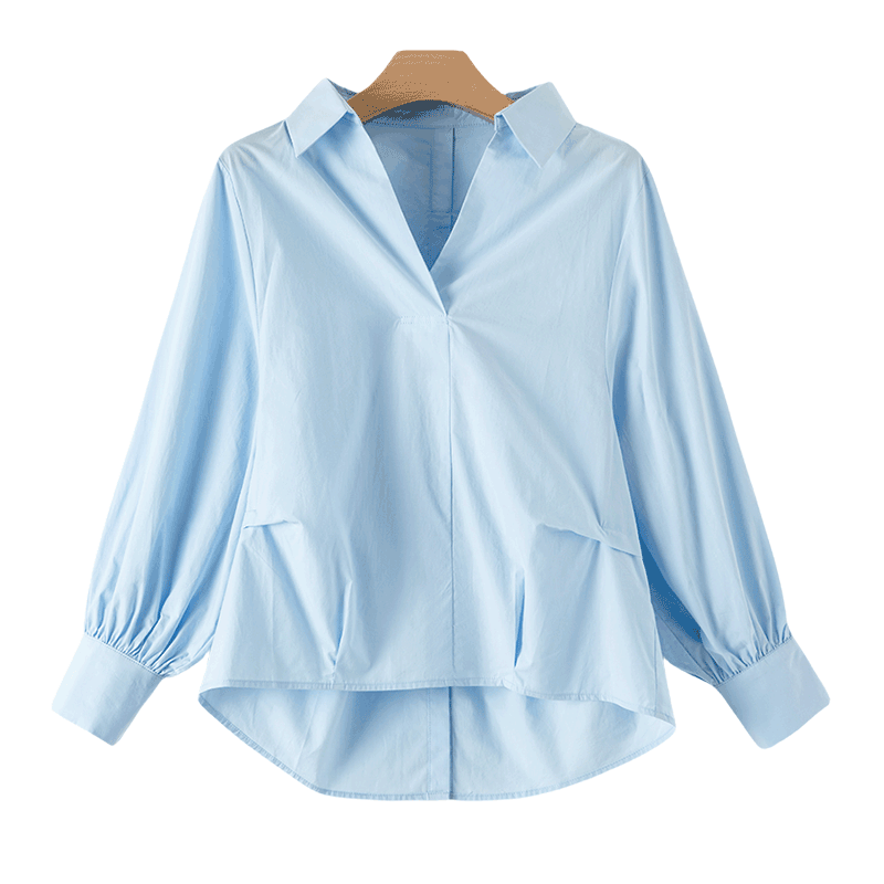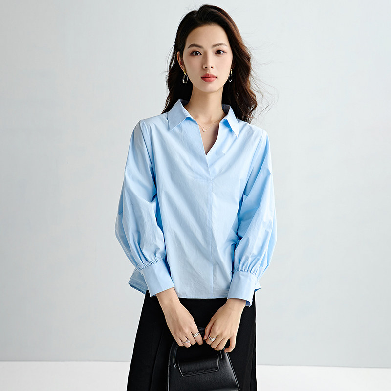 晚白2026年春新款经典时尚法式V领全棉上衣干练亲肤大码衬衫女