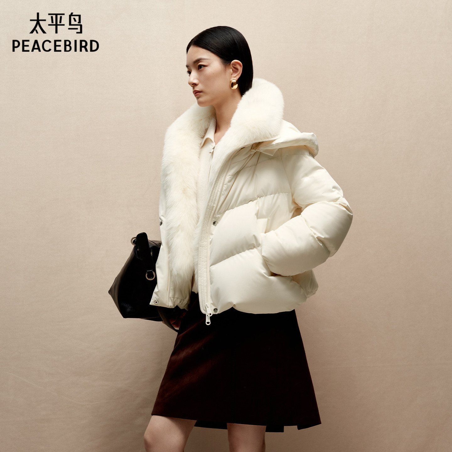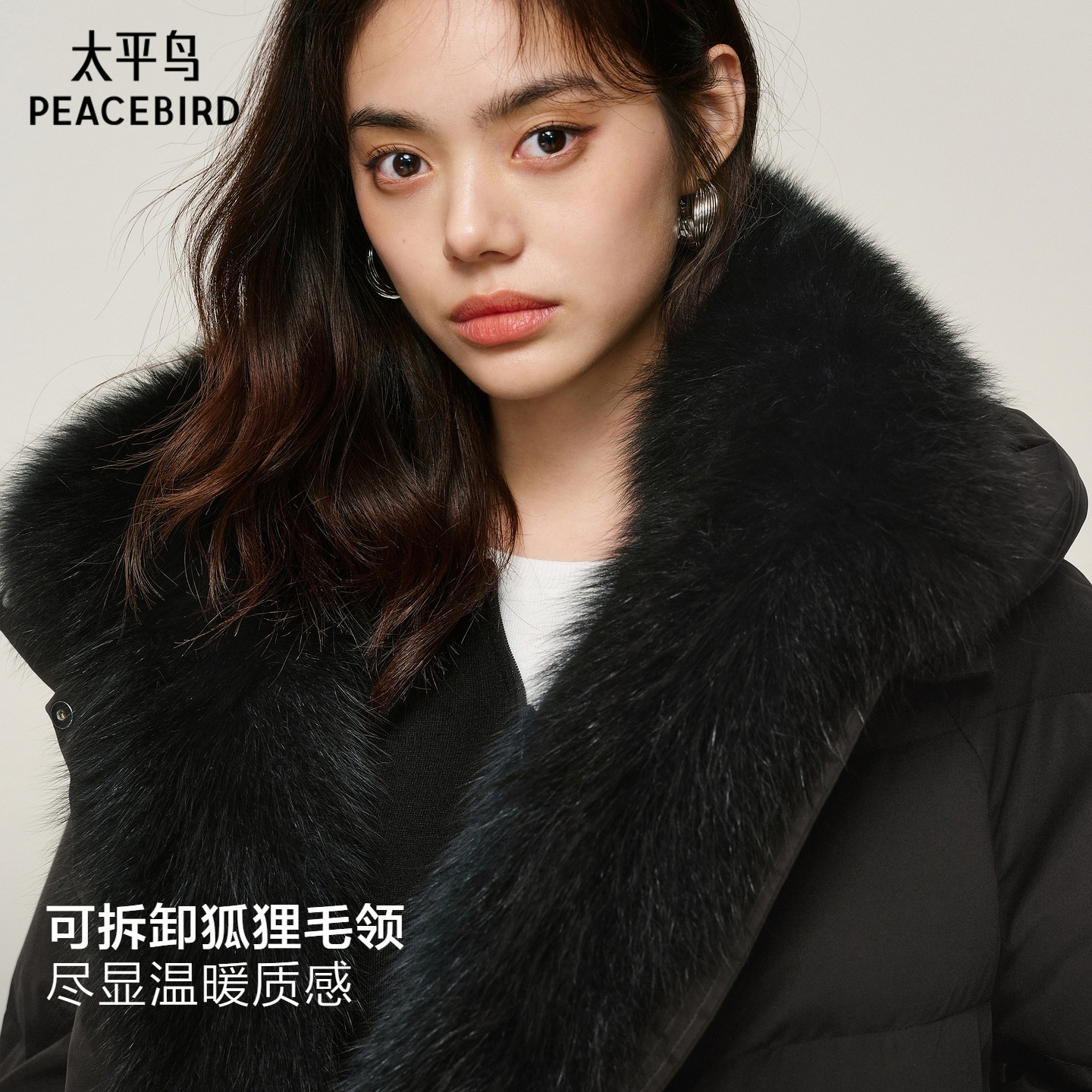 【张婧仪同款】冬日恋歌太平鸟商场狐狸毛领羽绒服保暖A1ACF4501