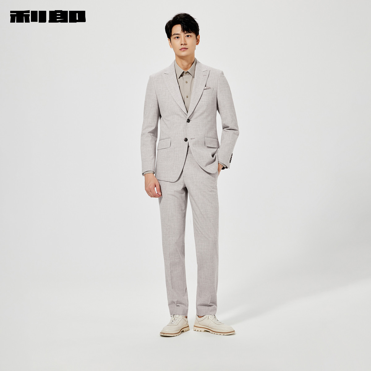 利郎官方 西服套装男士春季新款纯色戗驳领单排扣口袋西服两件套