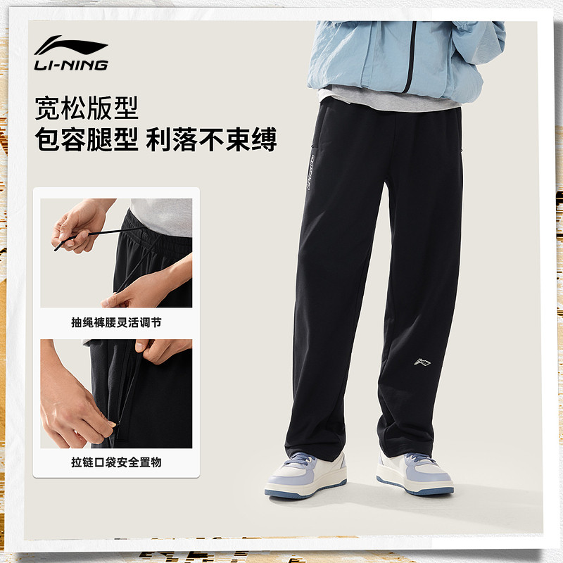李宁运动服 运动时尚系列 男款柔软舒适亲肤直筒宽松卫裤休闲长裤