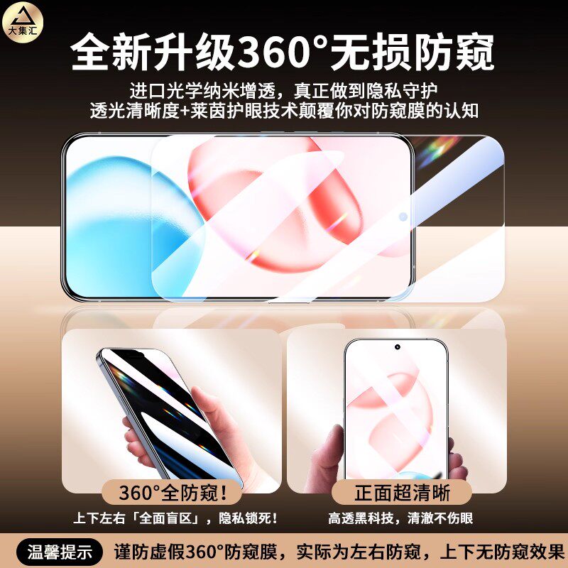 360°防窥膜】大集汇适用荣耀500手机膜400pro华为300ultra水凝膜90/100/200win80gt60se70曲面8magic7软x50i