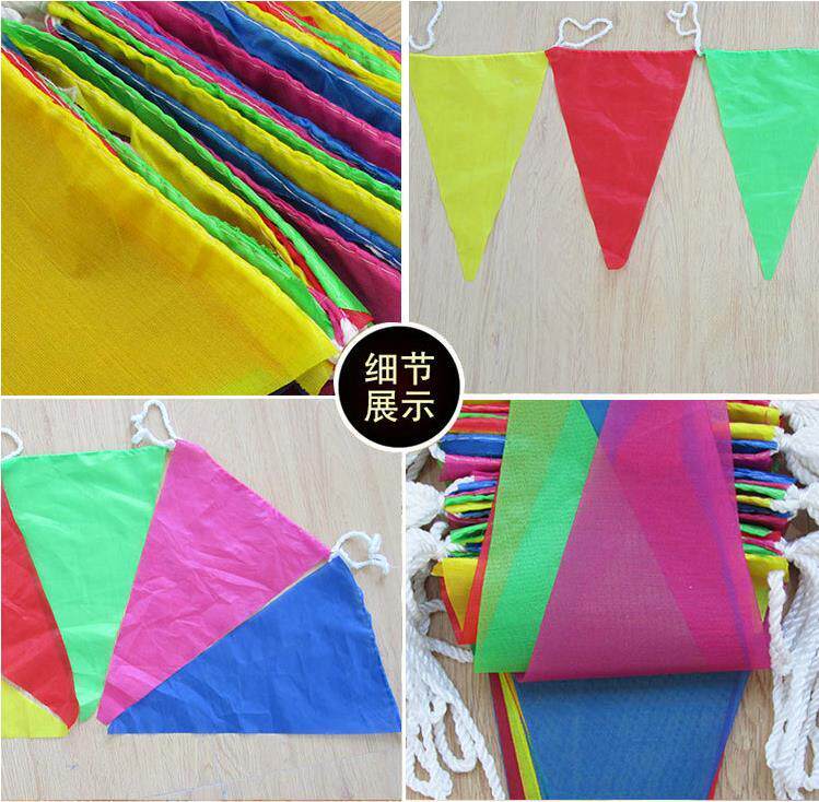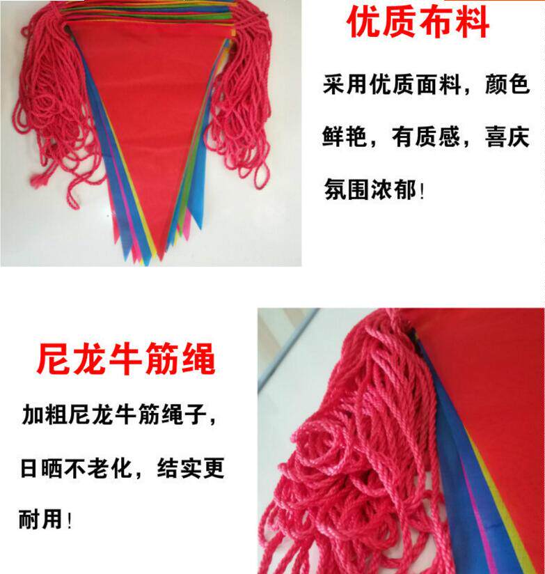 户外开业节庆典结婚装饰加粗尼龙绳三角旗串旗彩旗施工警戒小红旗