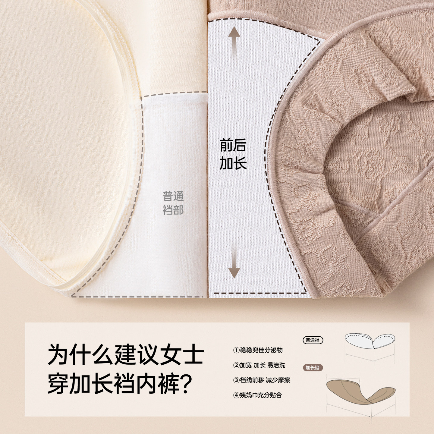 轻四角a类纯棉内裤女士/定制2025新款全棉加长档短裤安全椰丝里里
