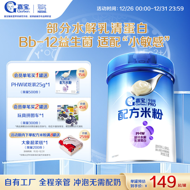 【营养好吸收】嘉宝配方米粉PHW部分水解蛋白益生菌高铁婴儿米粉