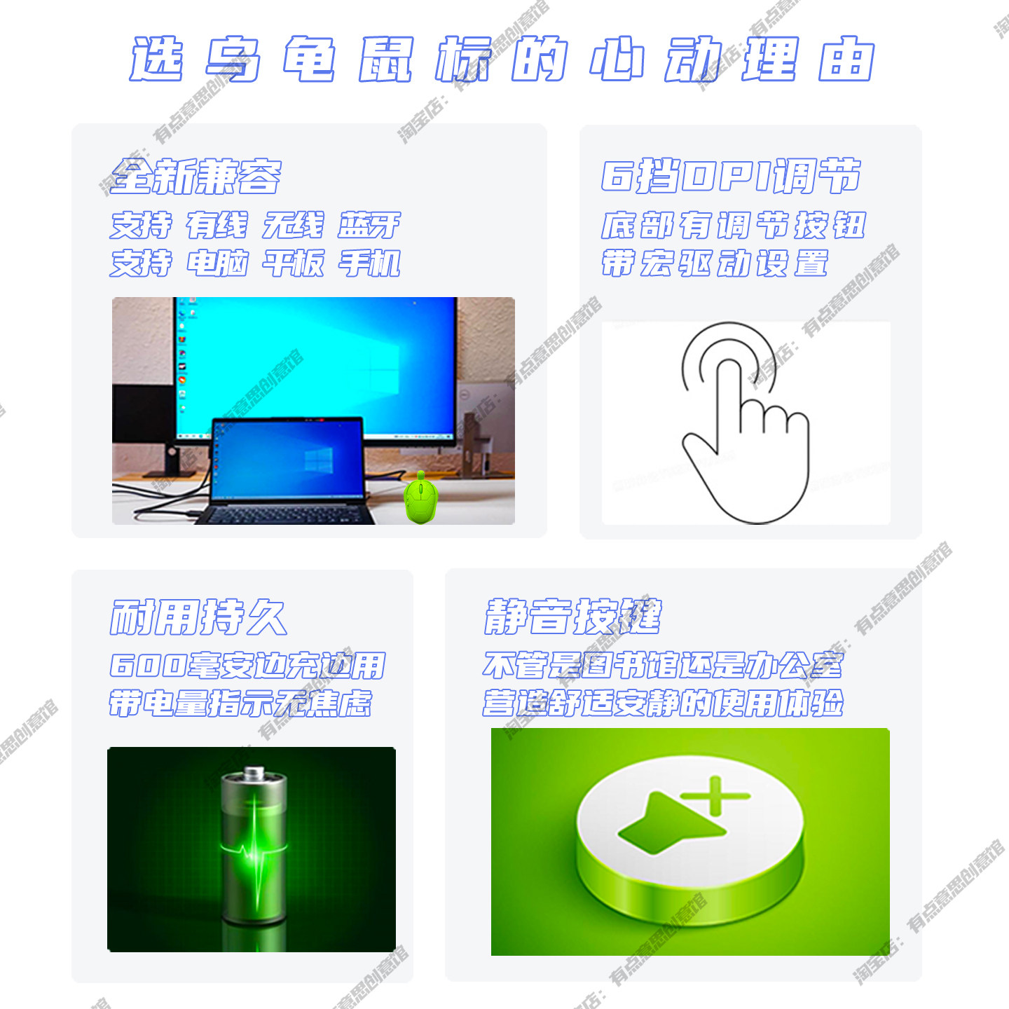 小乌龟鼠标无线静音笔记本电脑通用可充电款蓝牙办公女生可爱搞怪