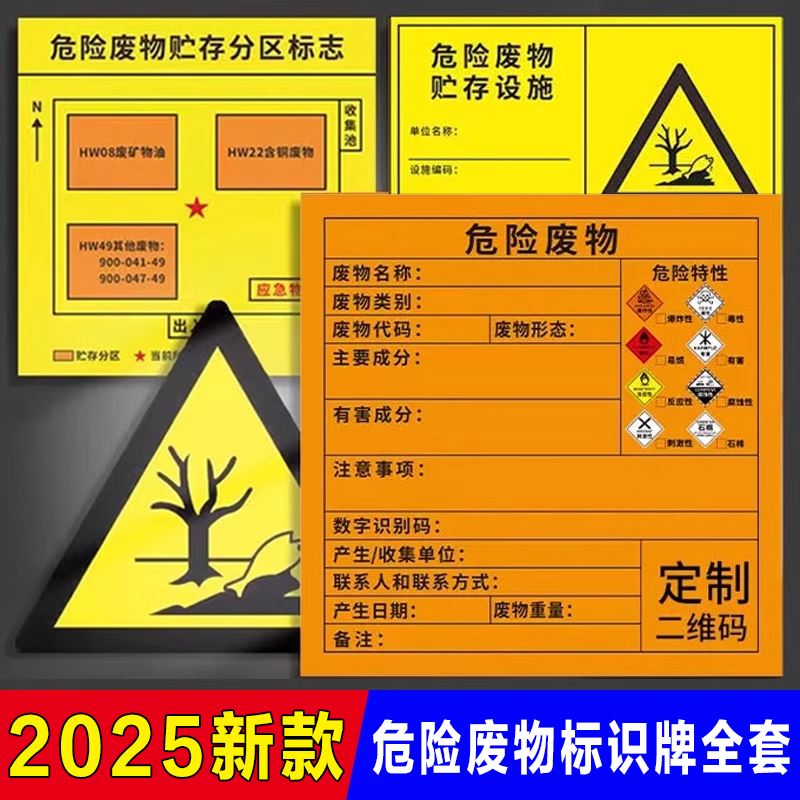 危险废物警示牌新版废机油废油漆桶废电瓶废切削液废活性炭危险废物标识牌危险废物警示牌危废标识牌指示贴纸