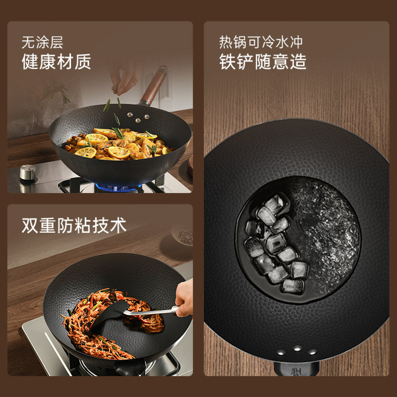 铁锅官方旗舰炒菜锅老式炒锅铁锅家用不粘锅无涂层燃气灶适用