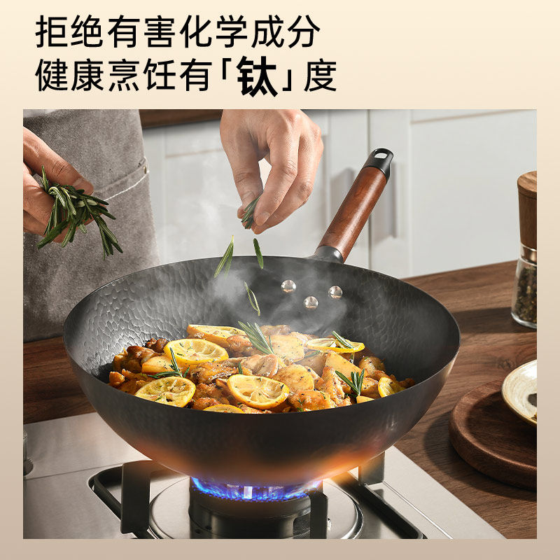 【新品】康巴赫Pro版真钛0涂层炒锅无涂层家用不粘锅不锈钢炒菜锅