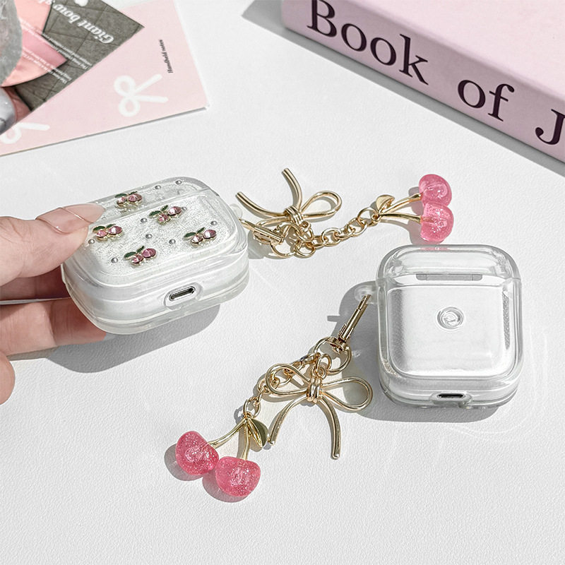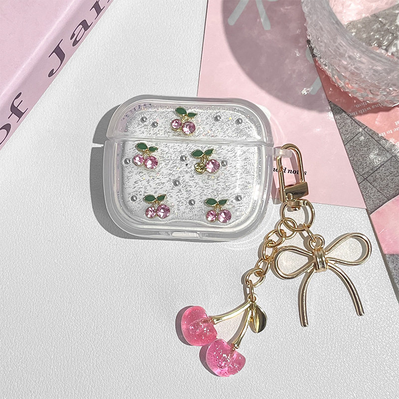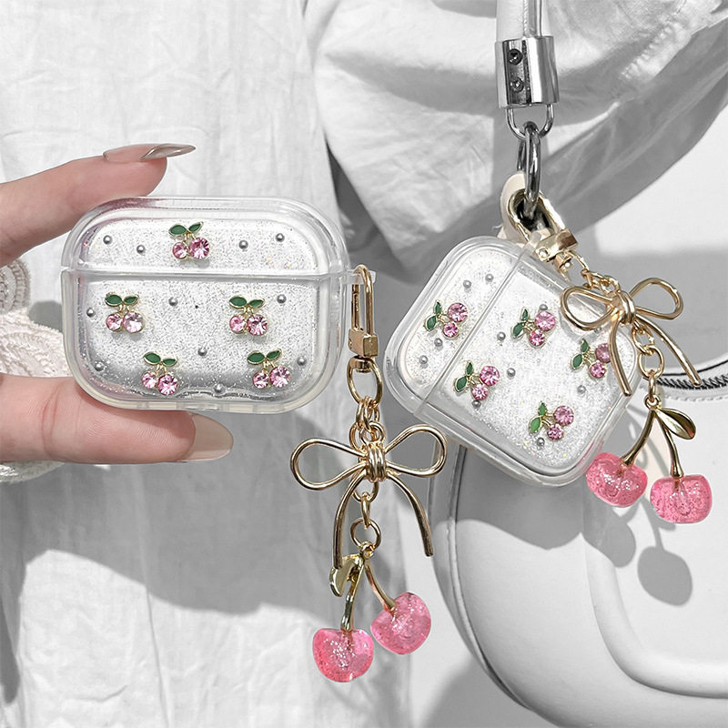 银珠闪粉小清新樱桃蓝牙耳机保护套适用苹果Airpodspro3日系女款Airpods1/2代领结吊坠Airpods4代耳机壳防摔