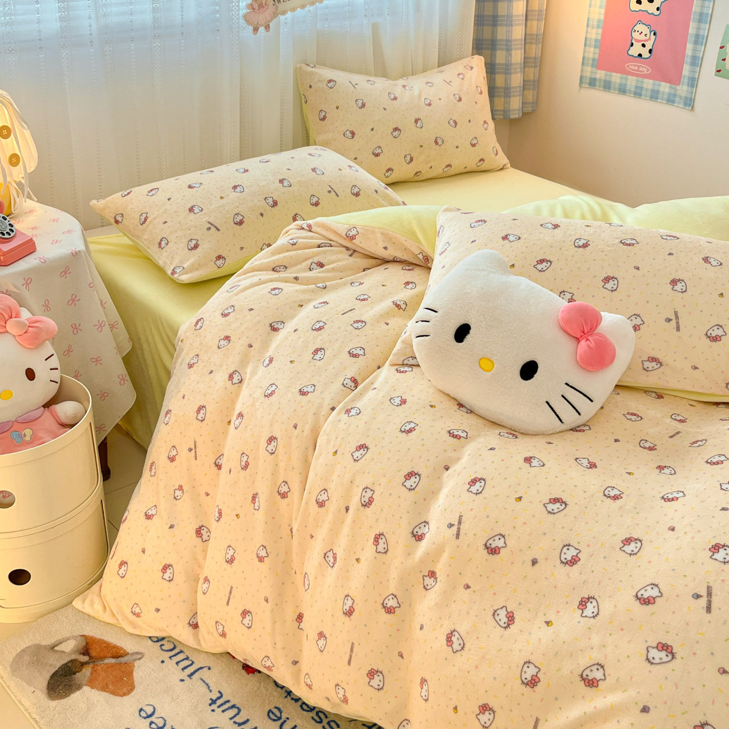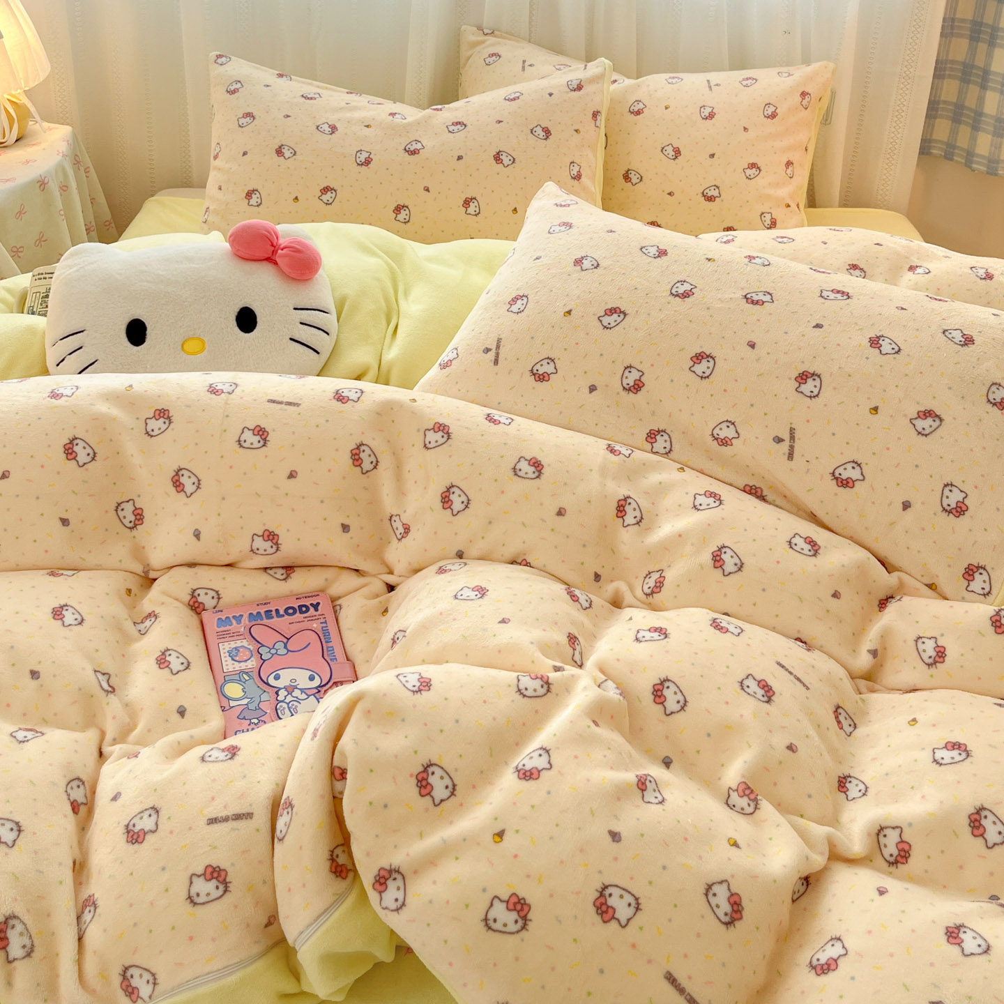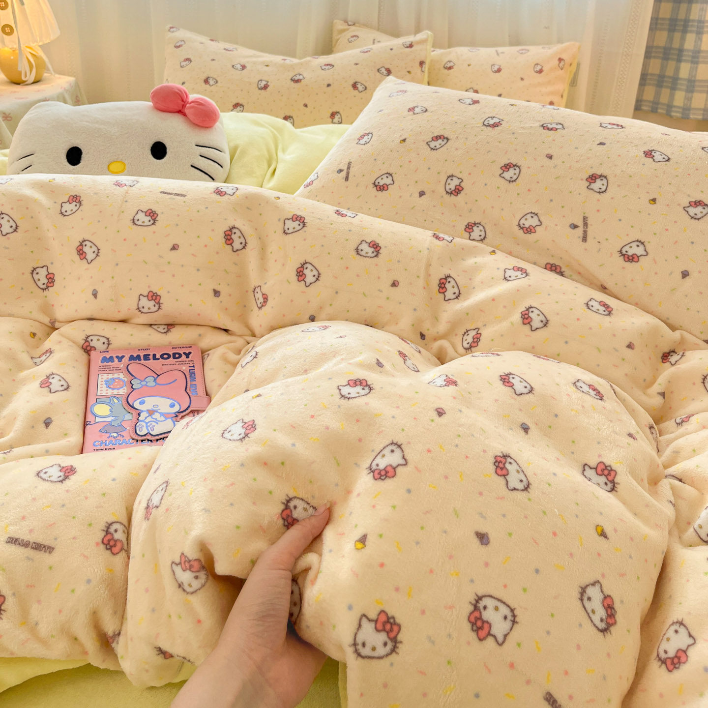冬季加厚牛奶绒四件套卡通被套双面加绒床单被罩学生宿舍三件套件