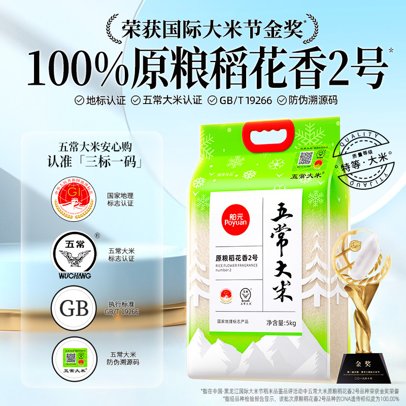 新米舶元五常大米特等原粮稻花香2号5kg东北大米地理标志优质真空