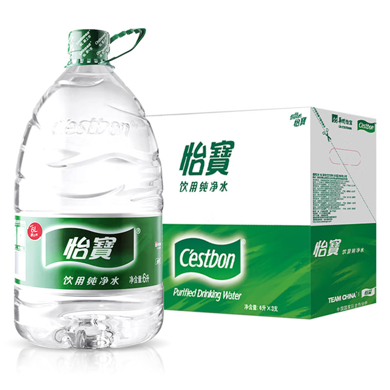 怡宝纯净水6L*3桶整箱包邮家庭大瓶桶装水非矿泉水泡茶煮饭饮用水