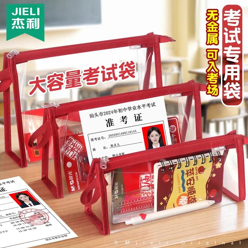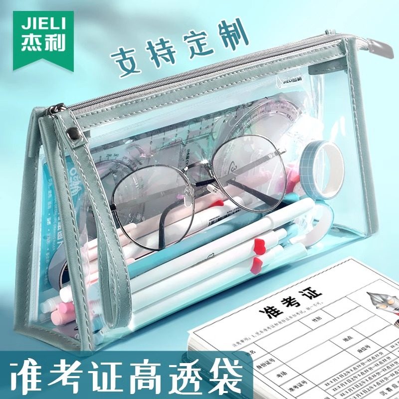 杰利透明笔袋考试专用袋子文具袋初中生男女孩中考公务员准考证收纳袋国考可带入考场的大容量大号笔袋可定制