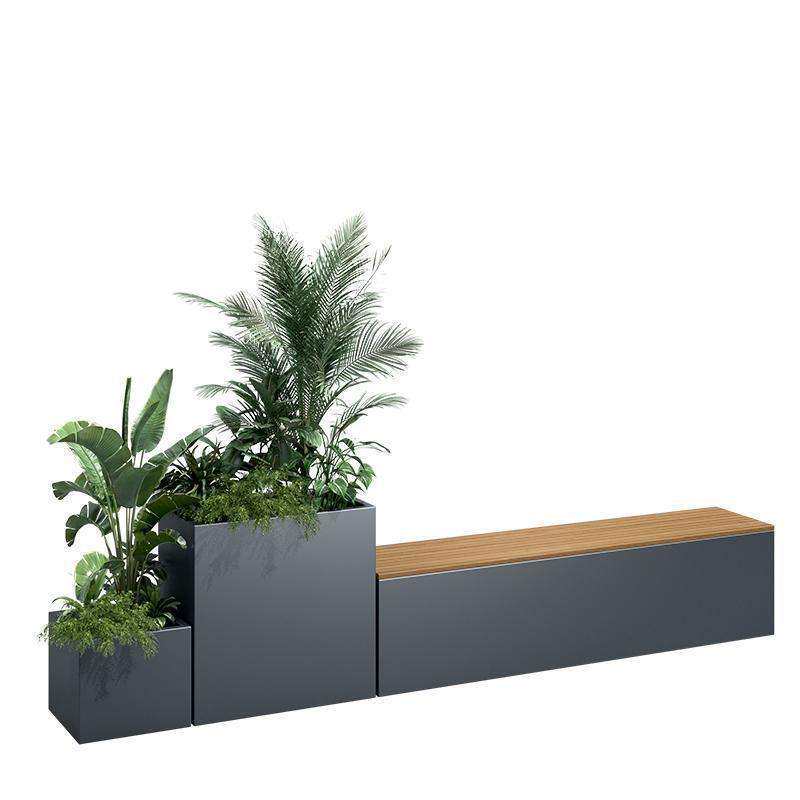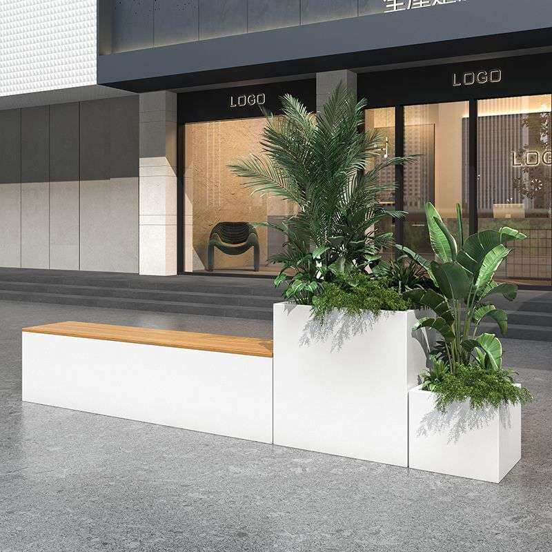 广场不锈钢花箱坐凳户外售楼部外摆花盆座椅组合花器铁艺花槽月季