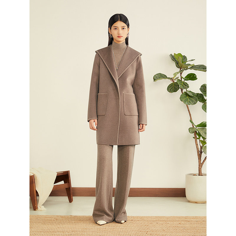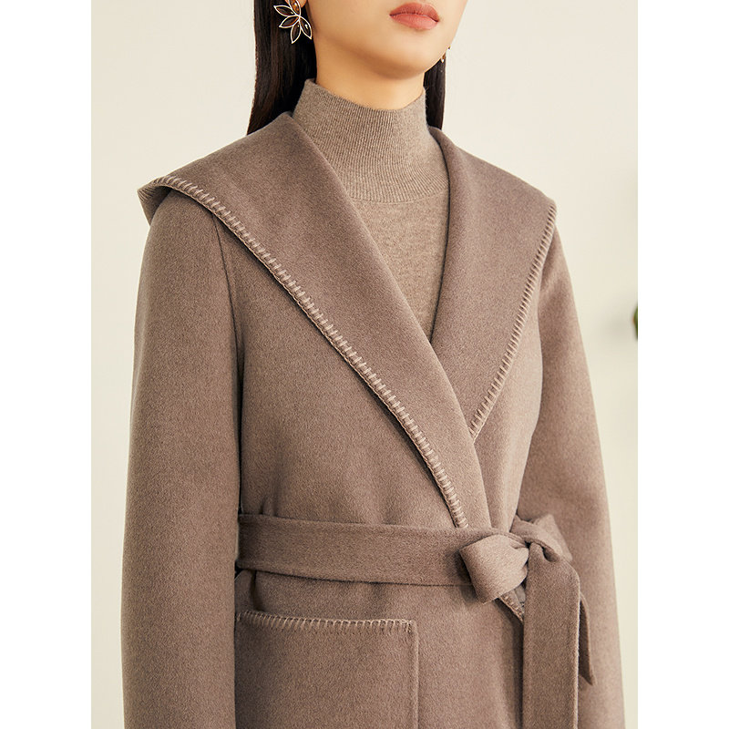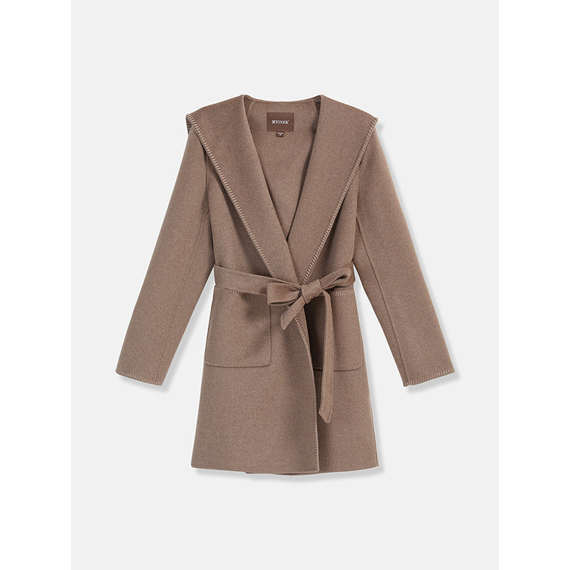 YINER音儿专选2025冬季新款睡袍式羊毛羊绒混纺连帽双面呢大衣