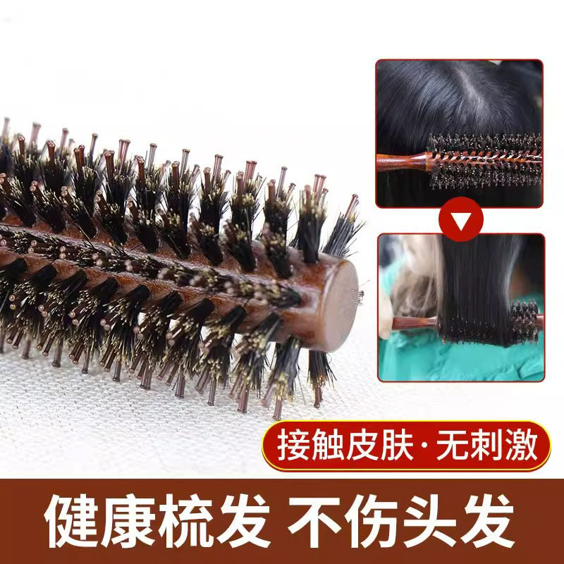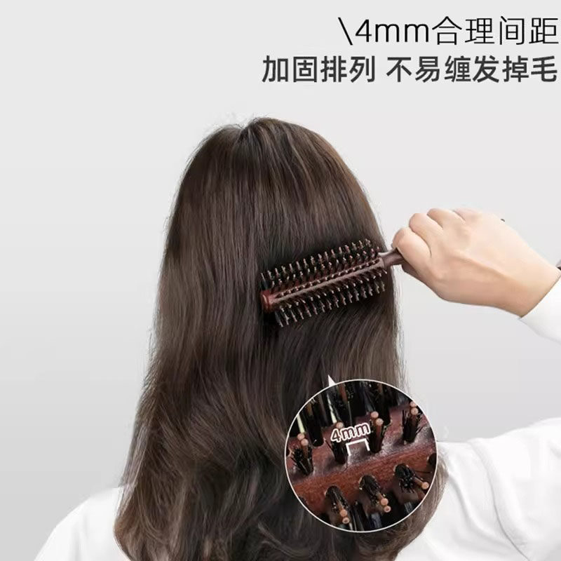 卷发梳女家用猪鬃毛木梳滚筒梳男内扣刘海蓬松直美发廊造型顺发梳
